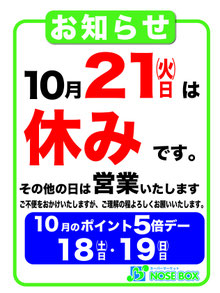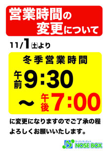 ノセボックスの今月の営業時間は、午前9時30分〜午後7時30分となっております。